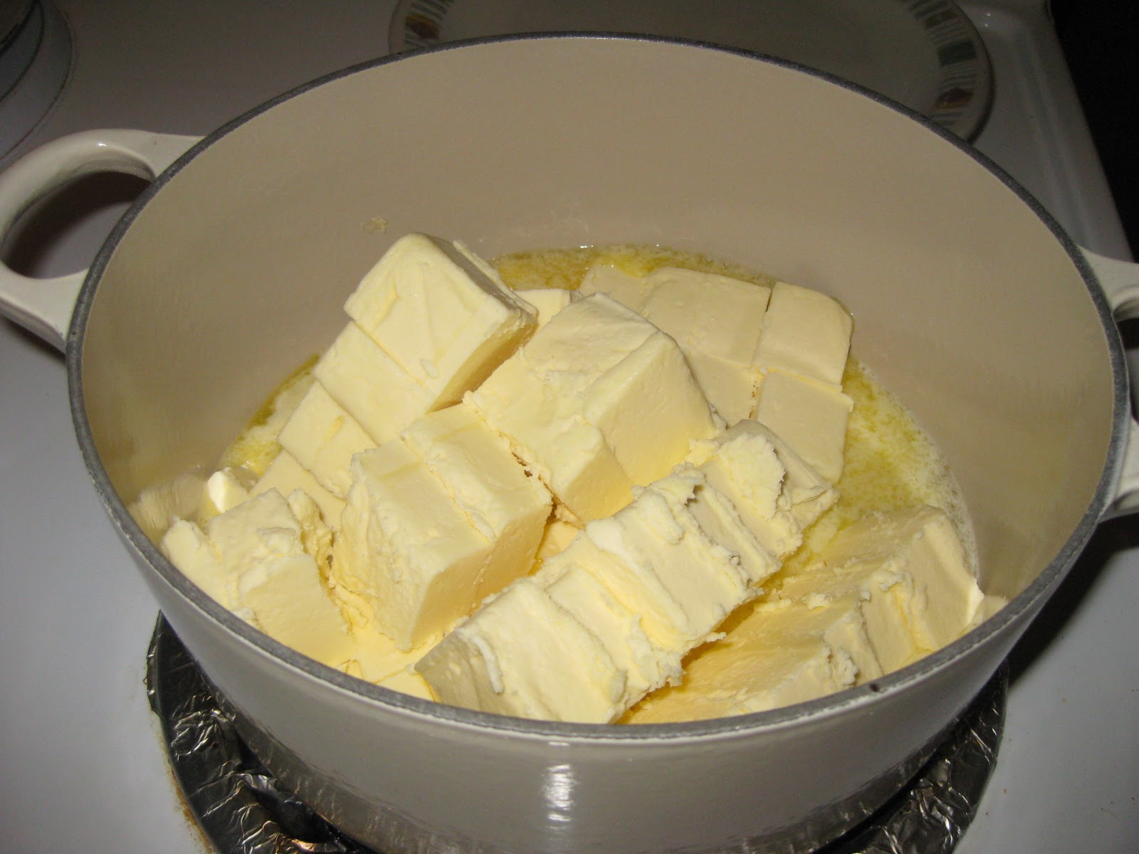 I melted down 2 lbs of butter. It started simmering away but didn't want to brown. I realized the problem was too much butter - I wasn't supposed to be deep frying here. So I scooped the butter out and browned it about a cup at a time - more of a "shallow fry" style.